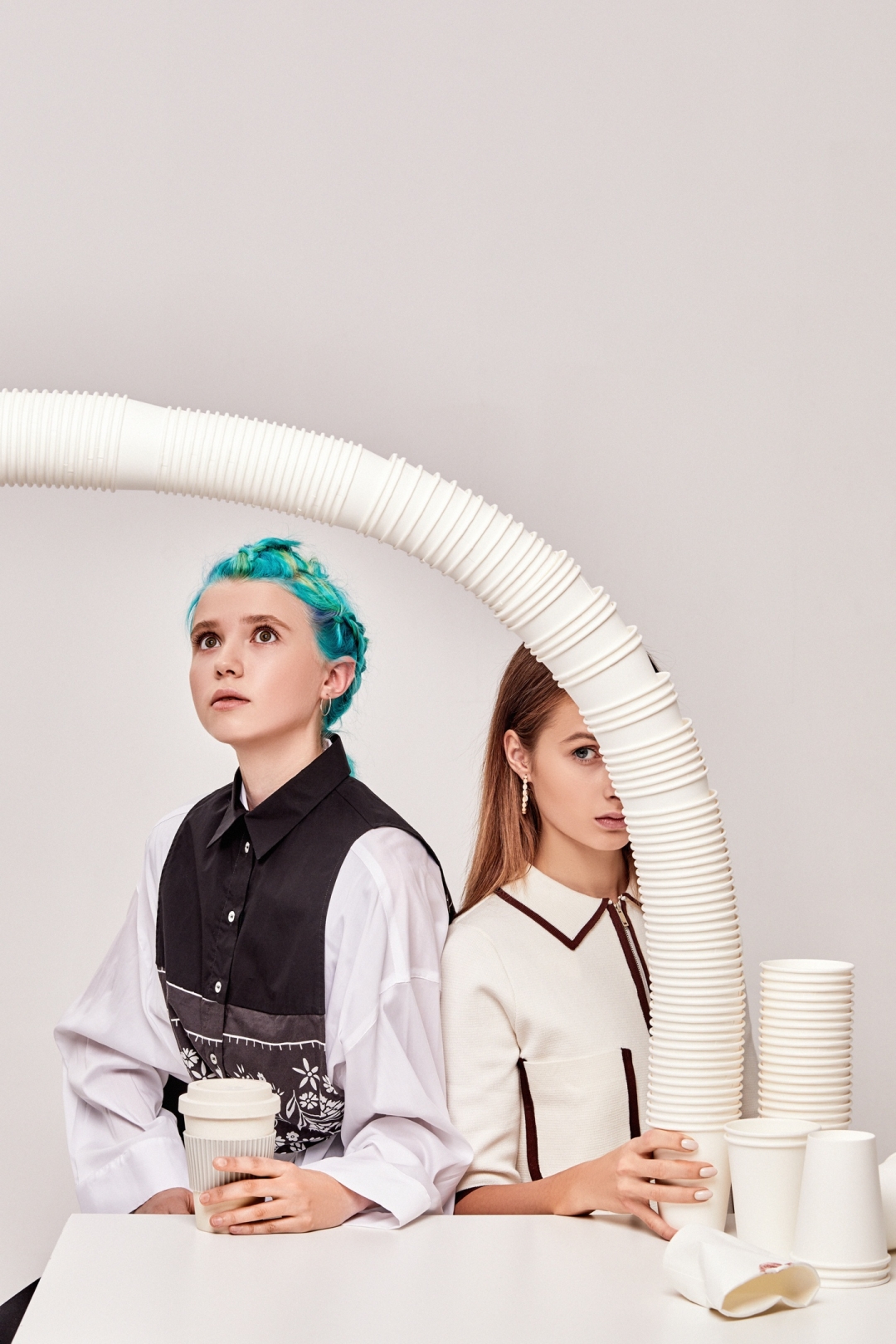 Команду нашли за пару дней: фотографа Данилу Ярощука, стилиста и идейного вдохновителя Серегу Cake Monster, замечательных моделей Соню Лукьянцеву, Юлию Елину, Марию Добровольскую из AURORA Model. Диана Паршкова, владелица студии The STATE, ранее работала в экологическом фонде, у нее есть образование в сфере экологического права, поэтому она сразу же поддержала нас и доверилась нашим экспериментам.